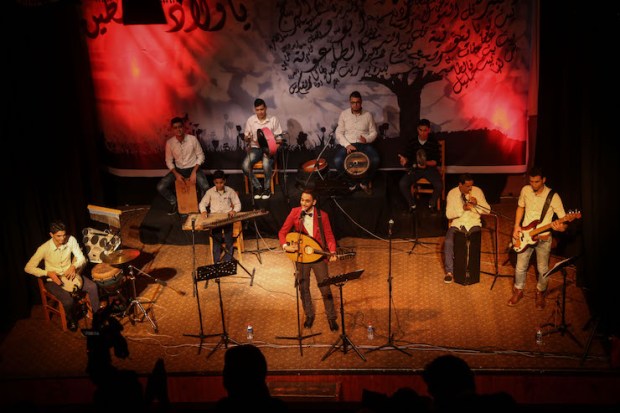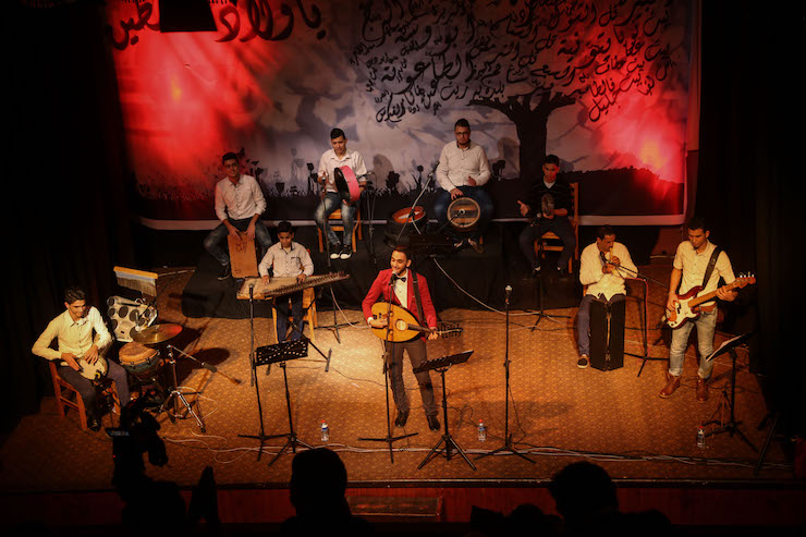 A performance in March inside Gaza’s Al-Meshal Cultural Center (Mohamed Al Hajjar)