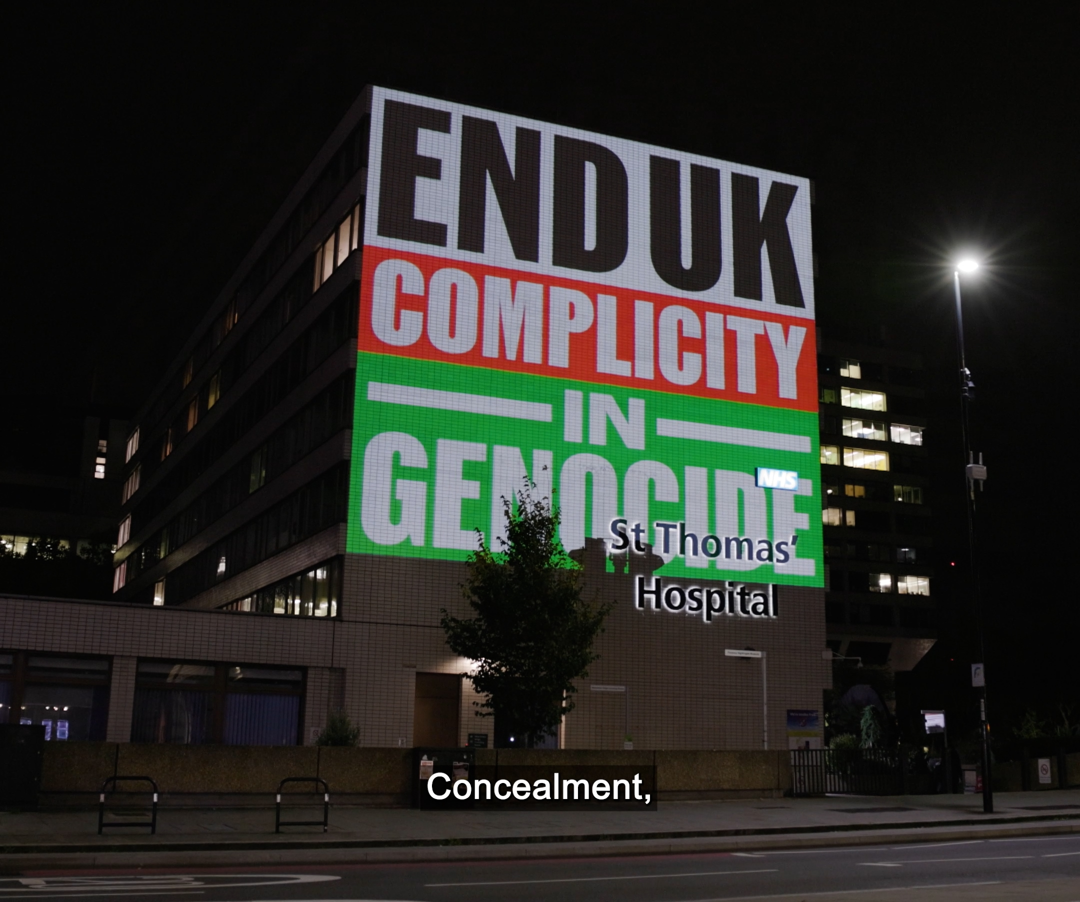 As Israel systematically eradicates the last remnants of healthcare in Gaza, human rights defenders have screened a film on the walls of St Thomas’s Hospital, London. Actor Khalid Abdalla speaks the words of surgeon Ghassan Abu-Sittah, who will never be able to unsee the horror that has been inflicted on Palestinians.
