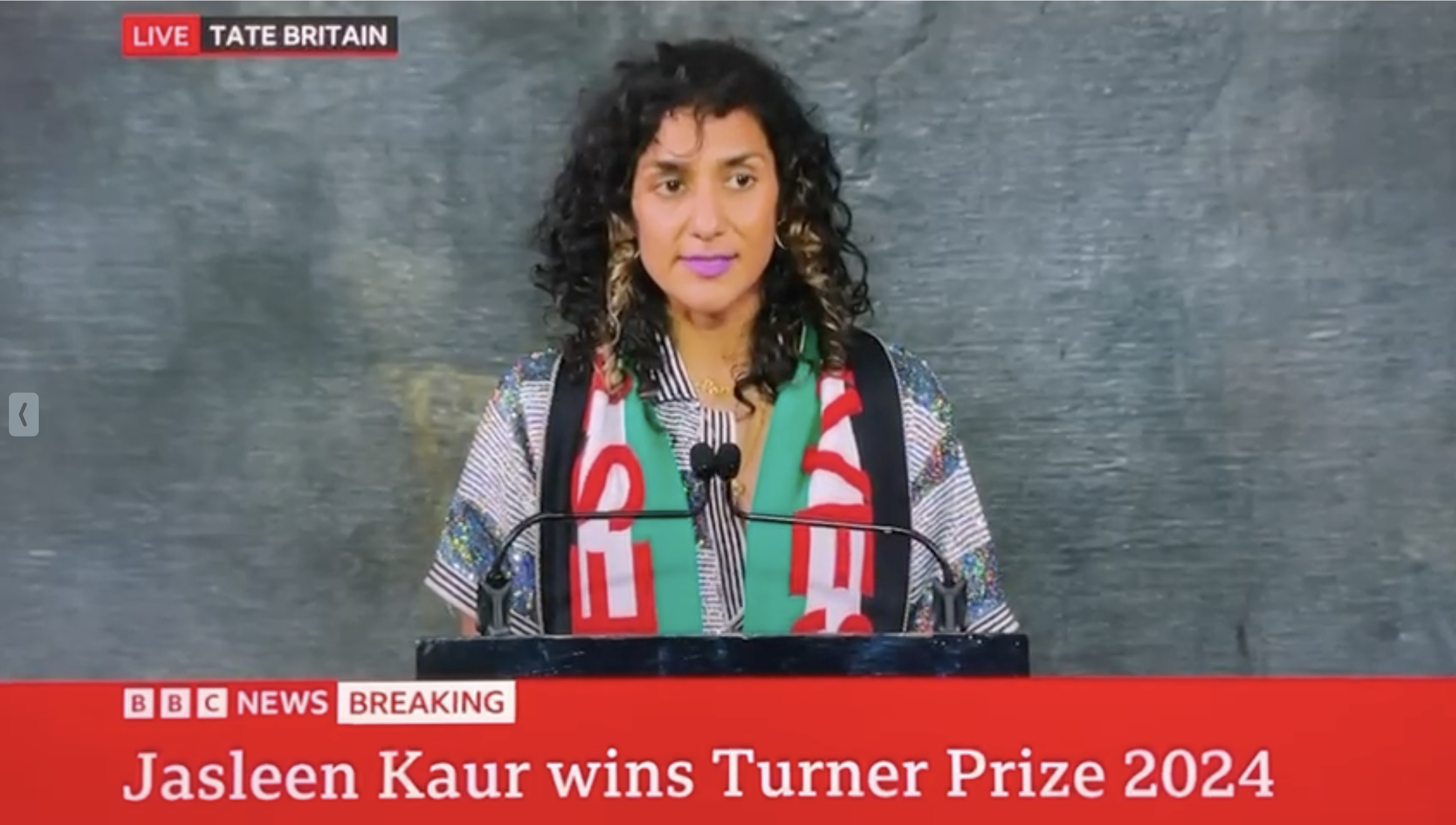 Artist Jasleen Kaur’s acceptance speech was delivered at the Turner Prize award ceremony at Tate Britain and broadcast live on BBC News, on 3rd December 2024.