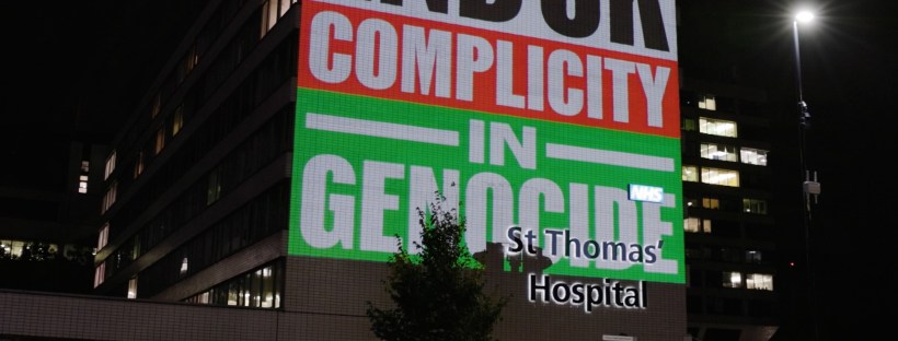 As Israel systematically eradicates the last remnants of healthcare in Gaza, human rights defenders have screened a film on the walls of St Thomas’ Hospital, London. Actor Khalid Abdalla speaks the words of surgeon Ghassan Abu-Sittah, who will never be able to unsee the horror that has been inflicted on Palestinians.