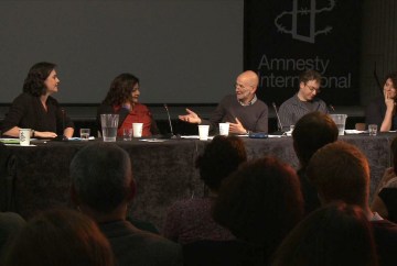 On October 7, 2014, we held what turned out to me a fascinating and illuminating public discussion at Amnesty International’s Action Centre . During the discussion other notable instances of threats to the independence of major cultural institutions by pro-Israeli government advocates were revealed. This pattern of censorship and manipulation provoked a fascinating audience discussion on the need for strategies to contest political pressure in the arts.